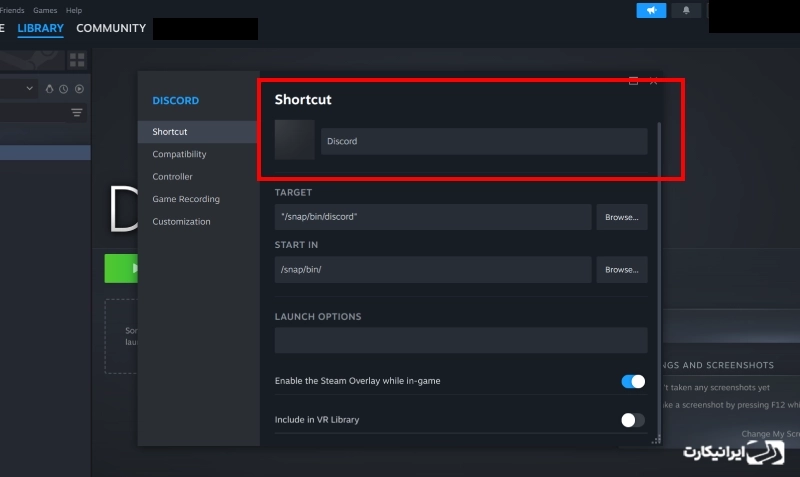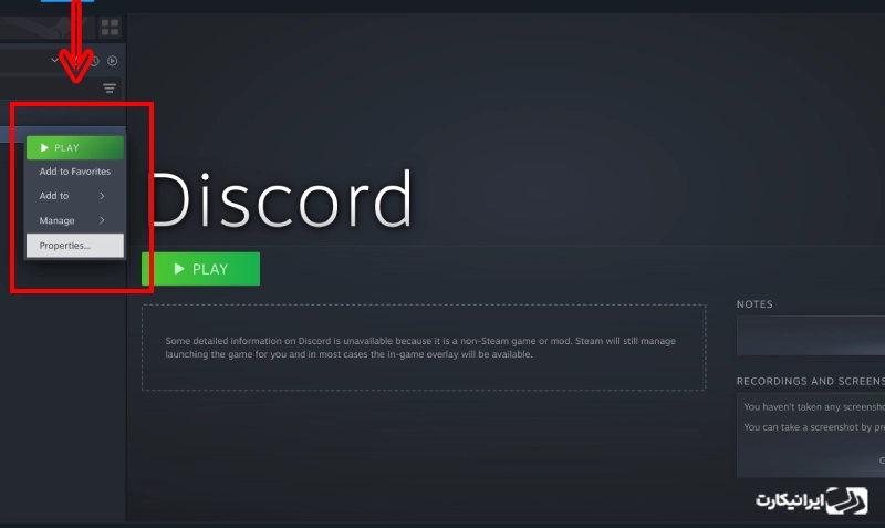 استیم یک صفحه اختصاصی برای بازی ادشده خواهد ساخت. در عکس زیر، اپلیکیشن دیسکورد به استیم اضافه شده است؛ اما بهخاطر آنکه این برنامه، بومی استیم نیست، آیکون، عکس بکگراند یا توضیحات خاصی ندارد.
