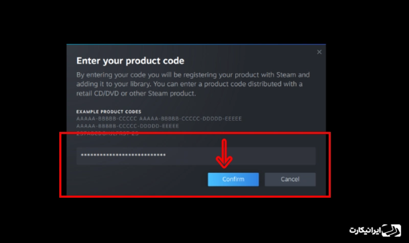 در این حالت یک کارت فیزیکی یا دیجیتالی به شما داده میشود که در آن کد ردیم (Redeem) بازی وجود دارد. با کلیک روی گزینه مربوط بهفعالسازی محصول، یک کادر باز میشود و شما باید کد مربوطه را در آن وارد کنید:
