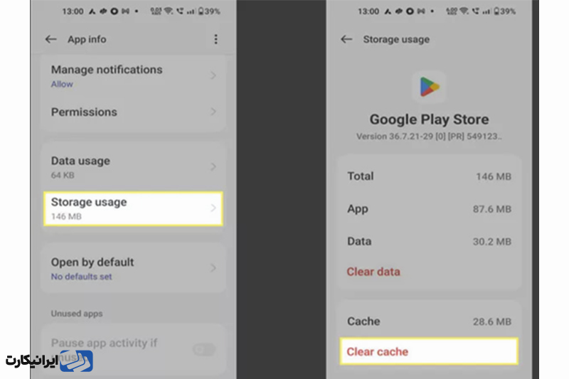 2. پاک کردن کش برای آپدیت گوگل پلی استور