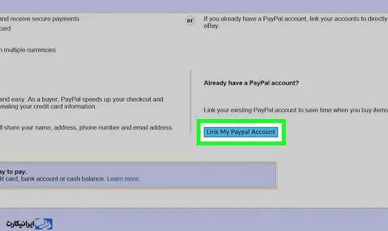 - ۵- پی پال خود را با حساب بانکی یا کارت خود وصل کنید.