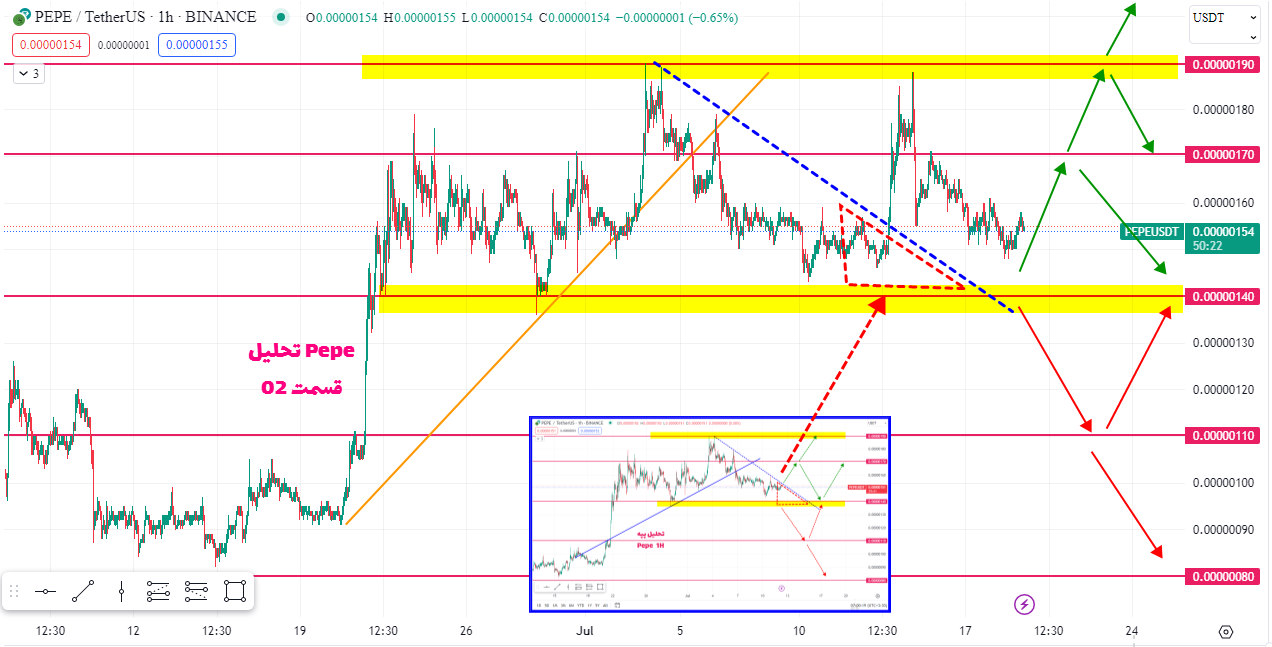 سناریوی ریزش 10 تا 30 درصدی Pepe چطوریه؟ | تحلیل Pepe | قسمت 03 | 09/05/1402 نزولی