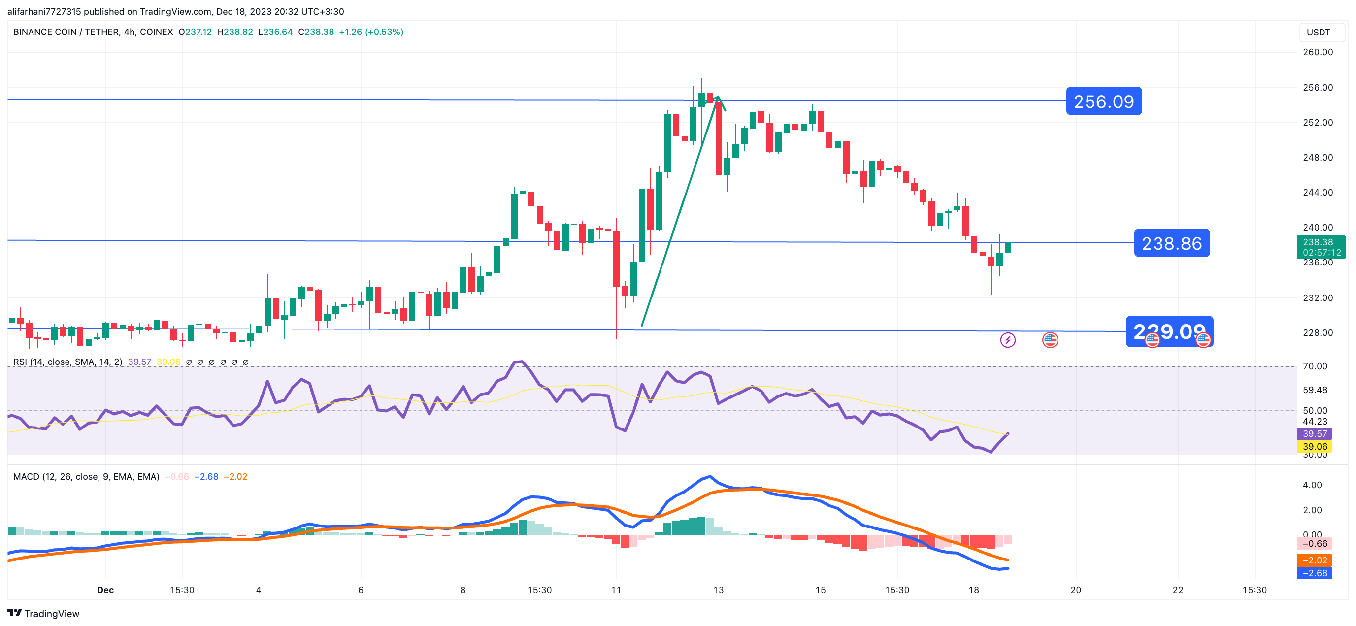 تحلیل تکنیکال بایننس کوین (BNB) ۱۴۰۲/۰۹/۲۵،ادامه روند صعودی صعودی