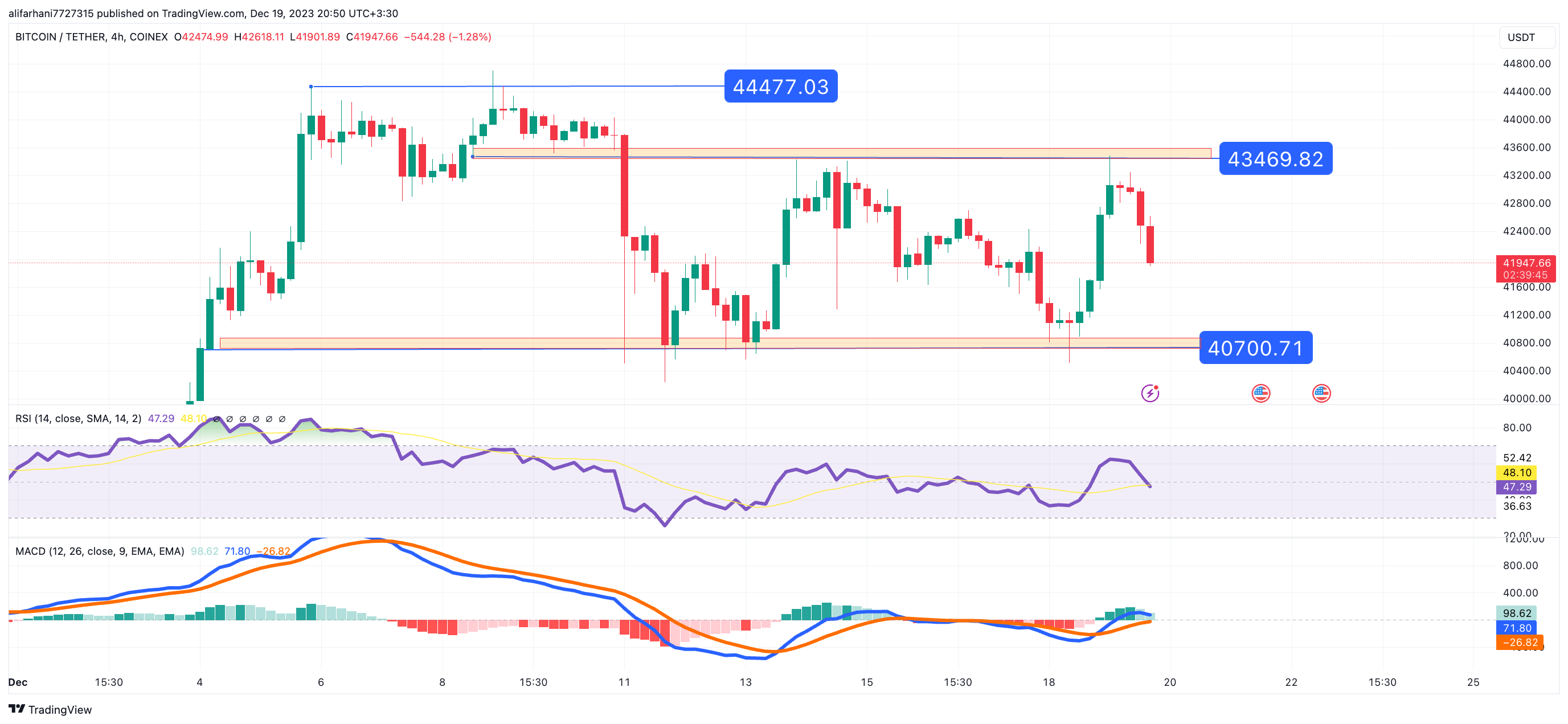 تحلیل تکنیکال بیت کوین (BTC) ۱۴۰۲/۰۹/۲۸،ادامه فاز نوسانی خنثی