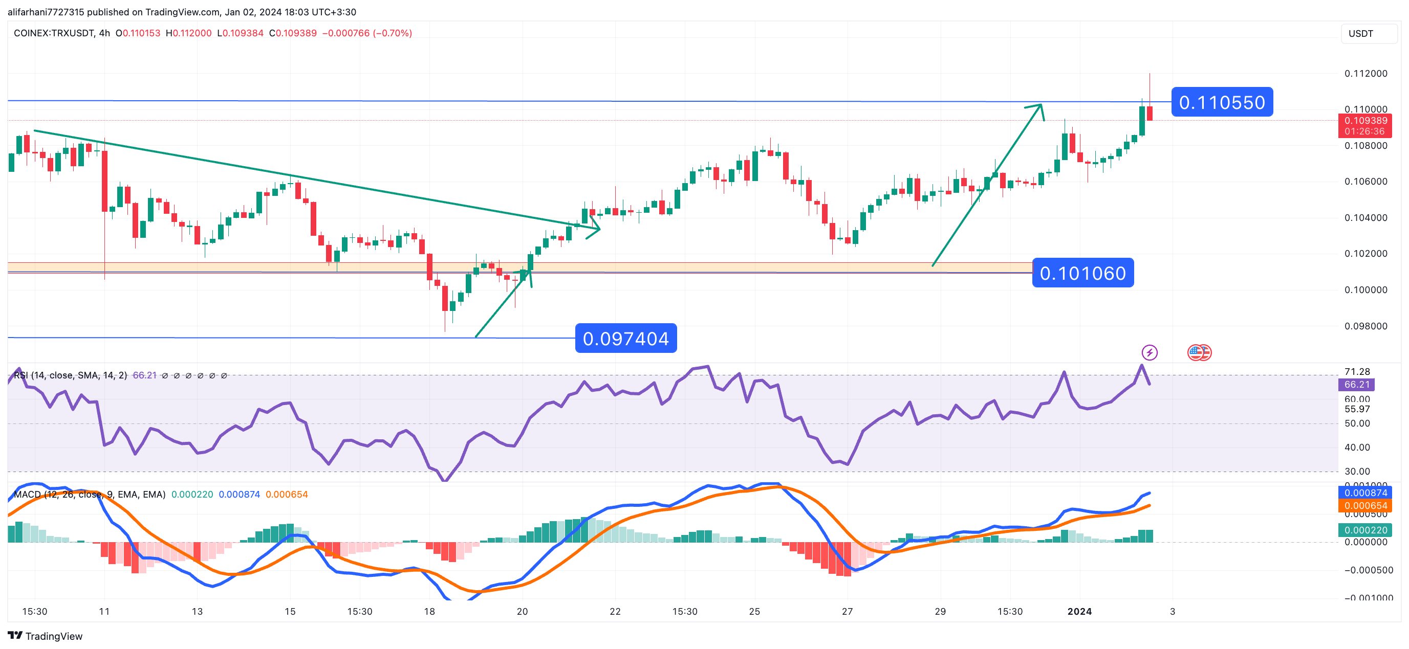 تحلیل تکنیکال ترون ۱۴۰۲/۱۰/۱۱،ادامه روند نوسانی خنثی