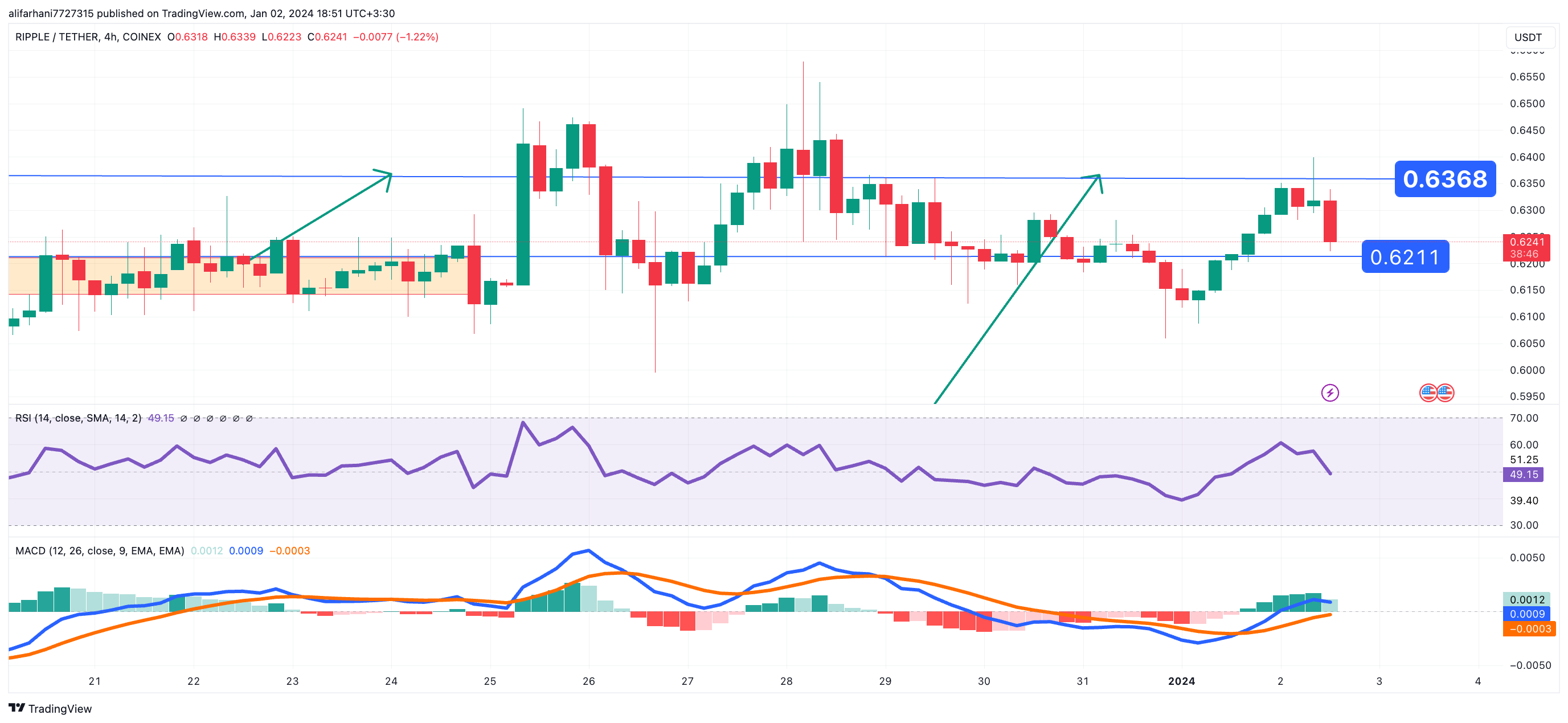 در این تحلیل تکنیکال، ما به روند نوسانی XRP ریپل در طول سال 2023 می پردازیم. در سال، قیمت XRP از 0.35 دلار به ازای هر توکن شروع شد، به اوج 0.82 دلار رسید و در نهایت در حدود 0.62 دلار تثبیت شد. چنین نوساناتی بر ماهیت پویا و غیرقابل پیش بینی بازار ارزهای دیجیتال تاکید می کند و زمینه را برای بحث در مورد اینکه آیا ریپل در سال آینده، 2024 افزایش خواهد یافت یا خیر، فراهم می کند.