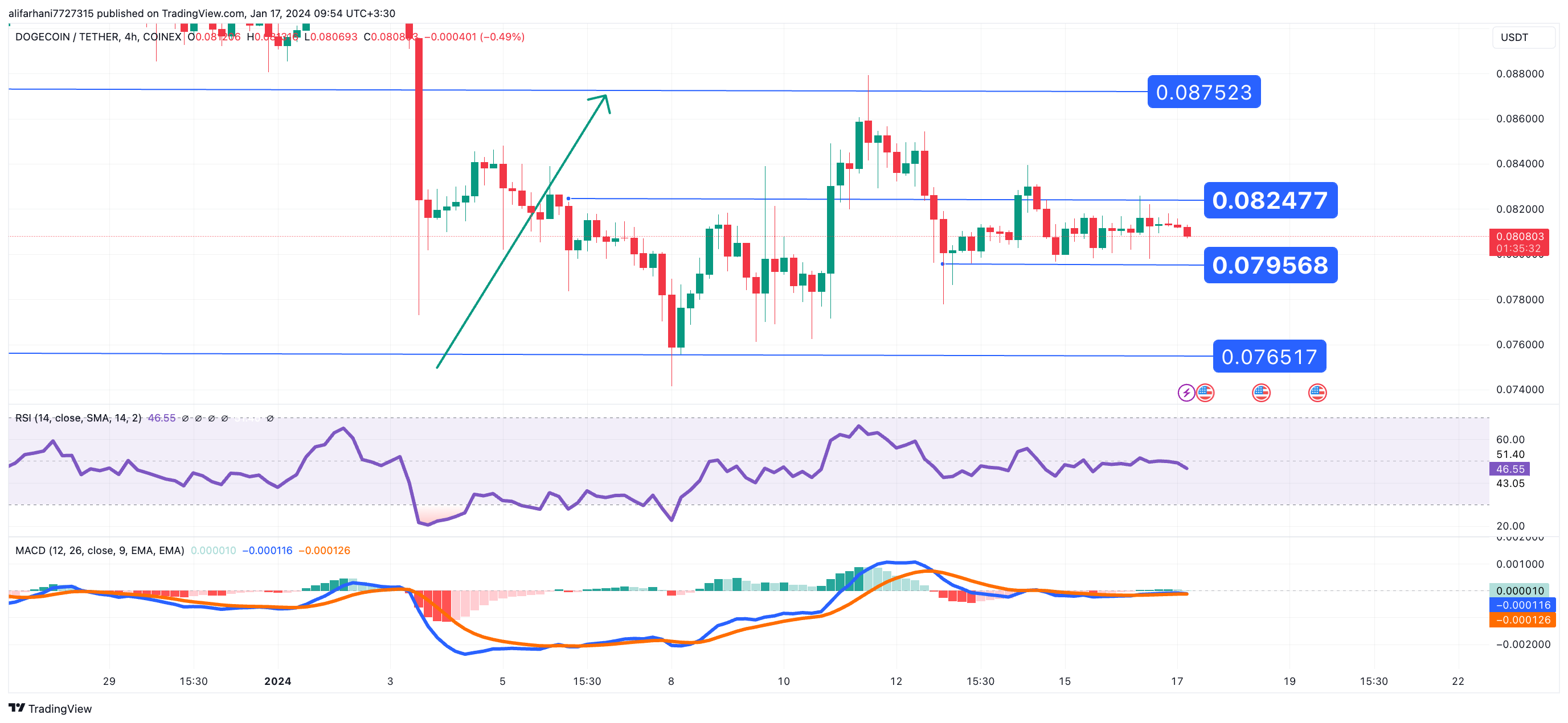 تحلیل تکنیکال دوج کوین ۱۴۰۲/۱۰/۲۵، ادامه روند نوسانی خنثی