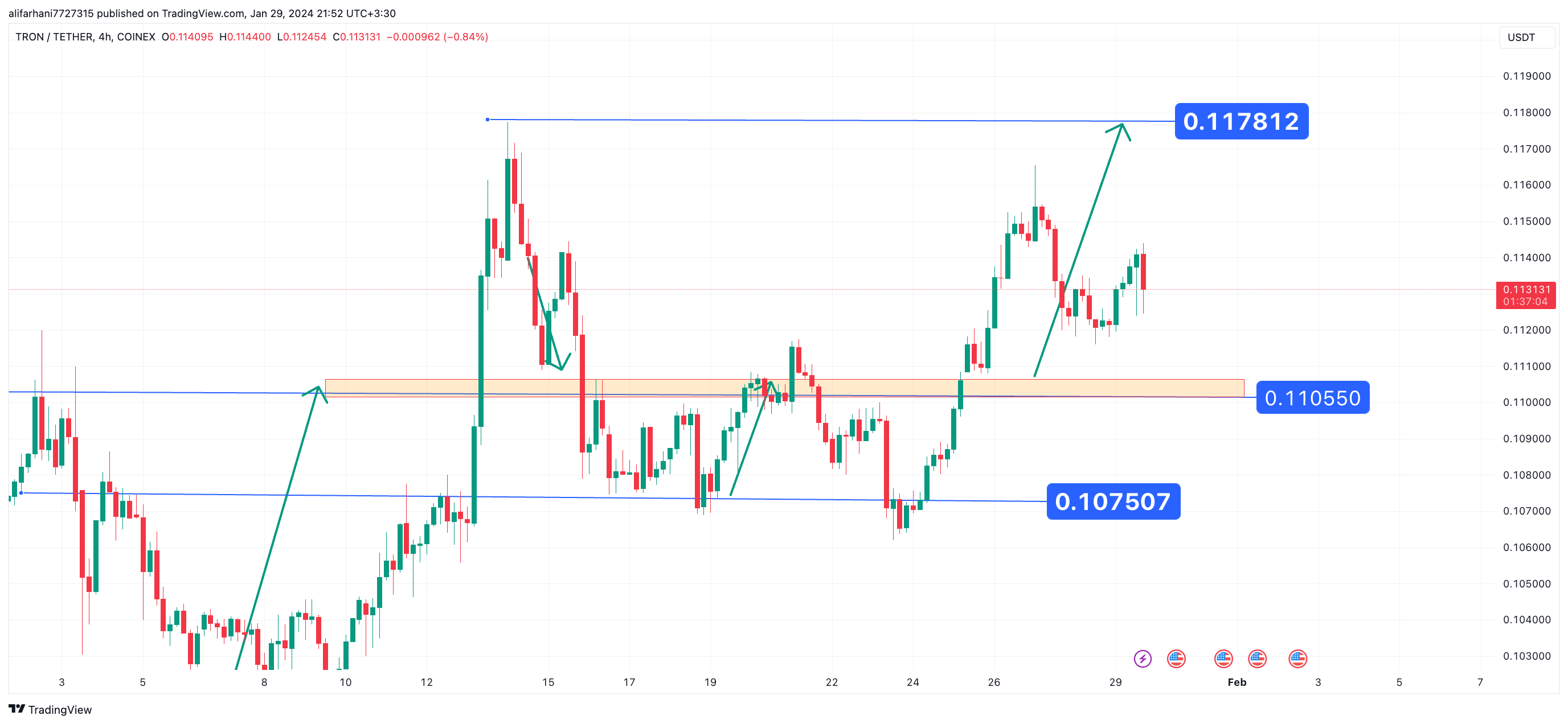 تحلیل تکنیکال ترون ۱۴۰۲/۱۱/۰۹،ادامه روند نوسانی خنثی