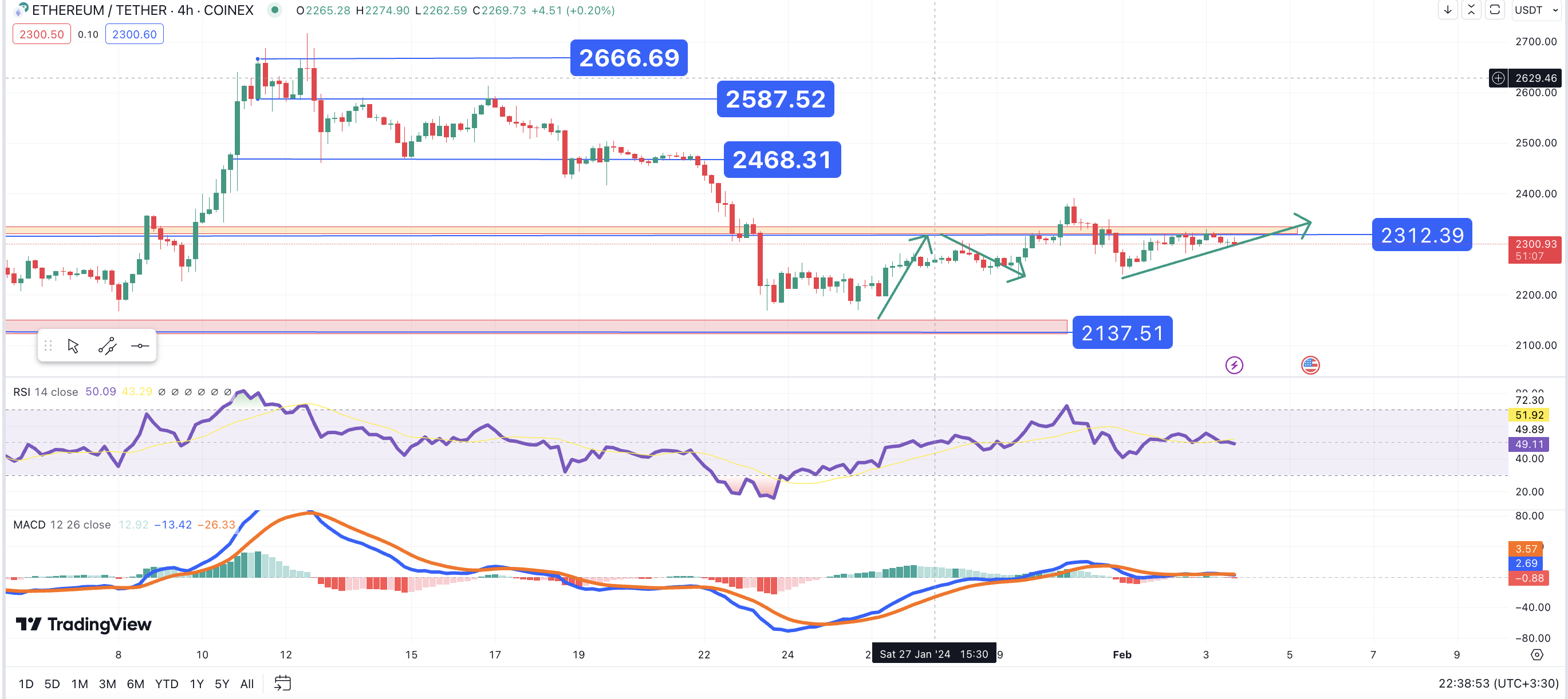 تحلیل تکنیکال اتریوم ۱۴۰۲/۱۱/۱۴، ادامه فاز نوسانی صعودی