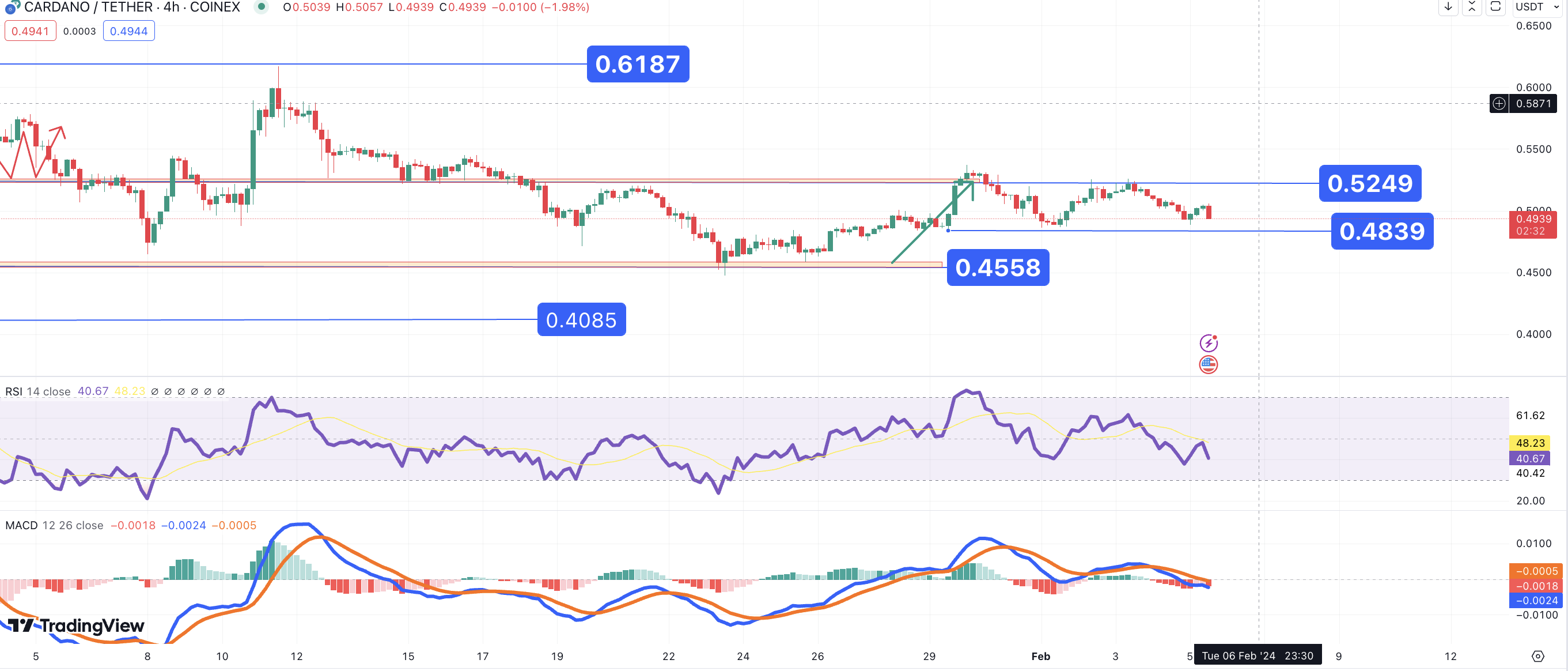 در ماههای اخیر، ارزش کاردانو یک روند صعودی پر قدرت را تجربه کرده است، با افزایش قیمت آن به بالاترین حد تاریخ 3.10 دلار در سپتامبر 2021، اوج سالانه 0.69 دلار در دسامبر 2023، کاردانو مجددا یک رکود شدید روبرو شد و به پایینترین حد چند ماه اخیر یعنی سطح 0.45 دلار رسید.اما با توجه به الگوریتمها و اندیکاتور های فنی ارزیابی می شود که کاردانو احتمالاً در طول ماه فوریه با نوسانات قابلتوجهی معامله شود و در یک مسیر صعودی روند خود را طی نمایید و این احتمال وجود خواهد داشت که این توکن 8.53 درصد از قیمت زمان انتشار تقریباً 0.5 دلار افزایش می یابد و در 29 فوریه به 0.543316 دلار دست پیدا کند. همچنین “شاخص ترس و طمع” – شاخصی که نگرش سرمایه گذاران را نسبت به یک دارایی ردیابی می کند در محدوده “طمع” ثبت شده است.