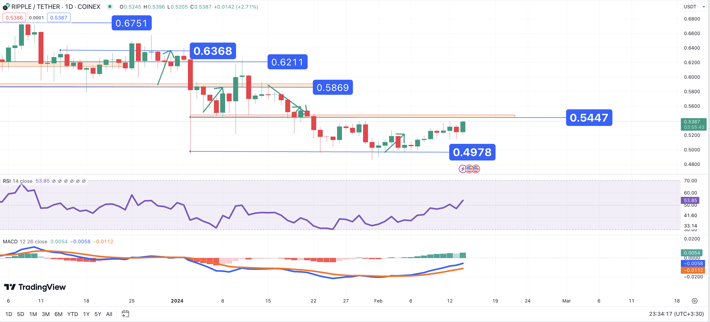 تحلیل تکنیکال ریپل (XRP) ۱۴۰۲/۱۱/۲۵، ادامه فاز نوسانی خنثی