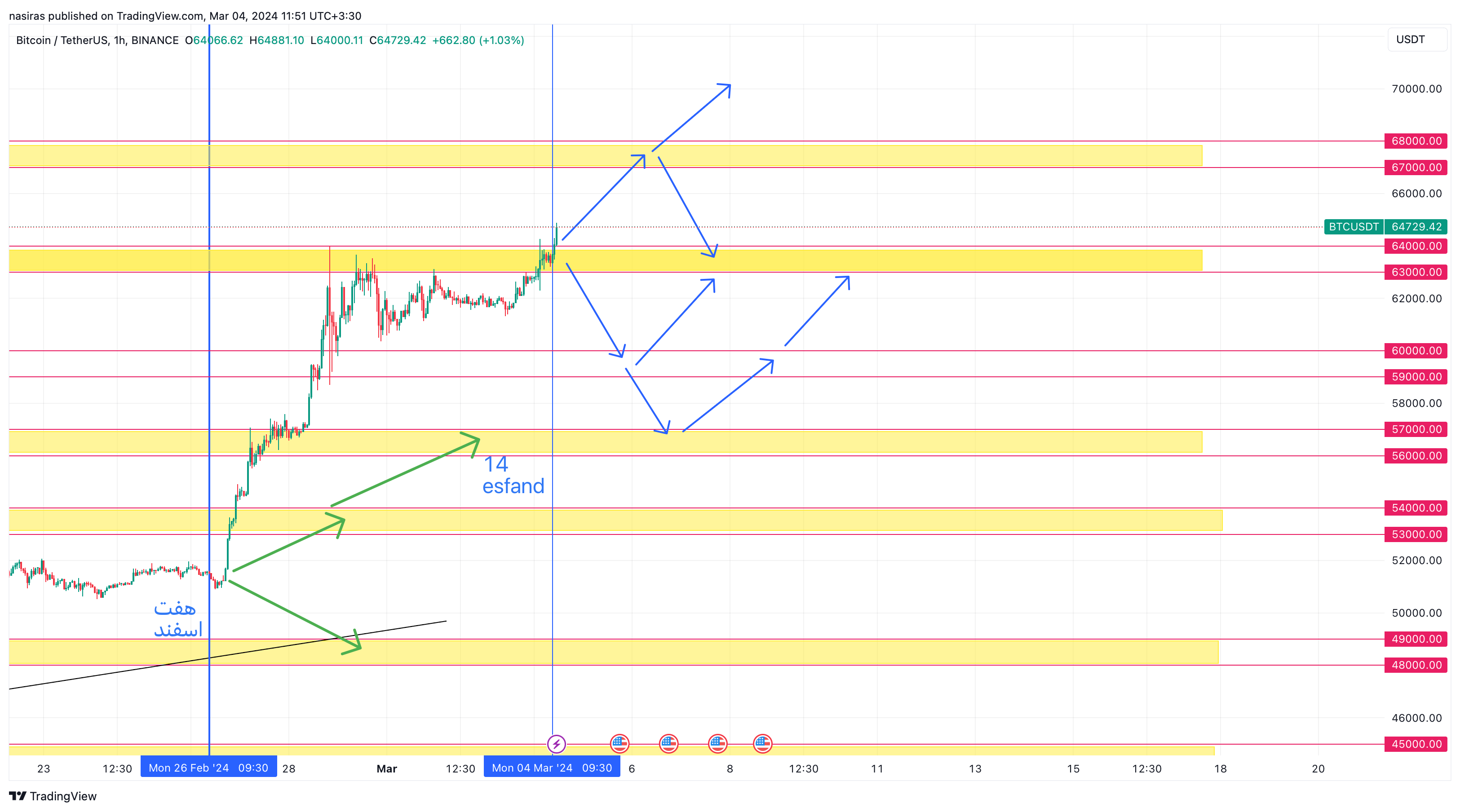 بیت کوین به ۶۴۰۰۰ دلار رسید. الان بخرم یا در ۵۹۰۰۰ دلار؟ | واچ لیست A | قسمت دوم | ۱۴ اسفند ۱۴۰۲ خنثی
