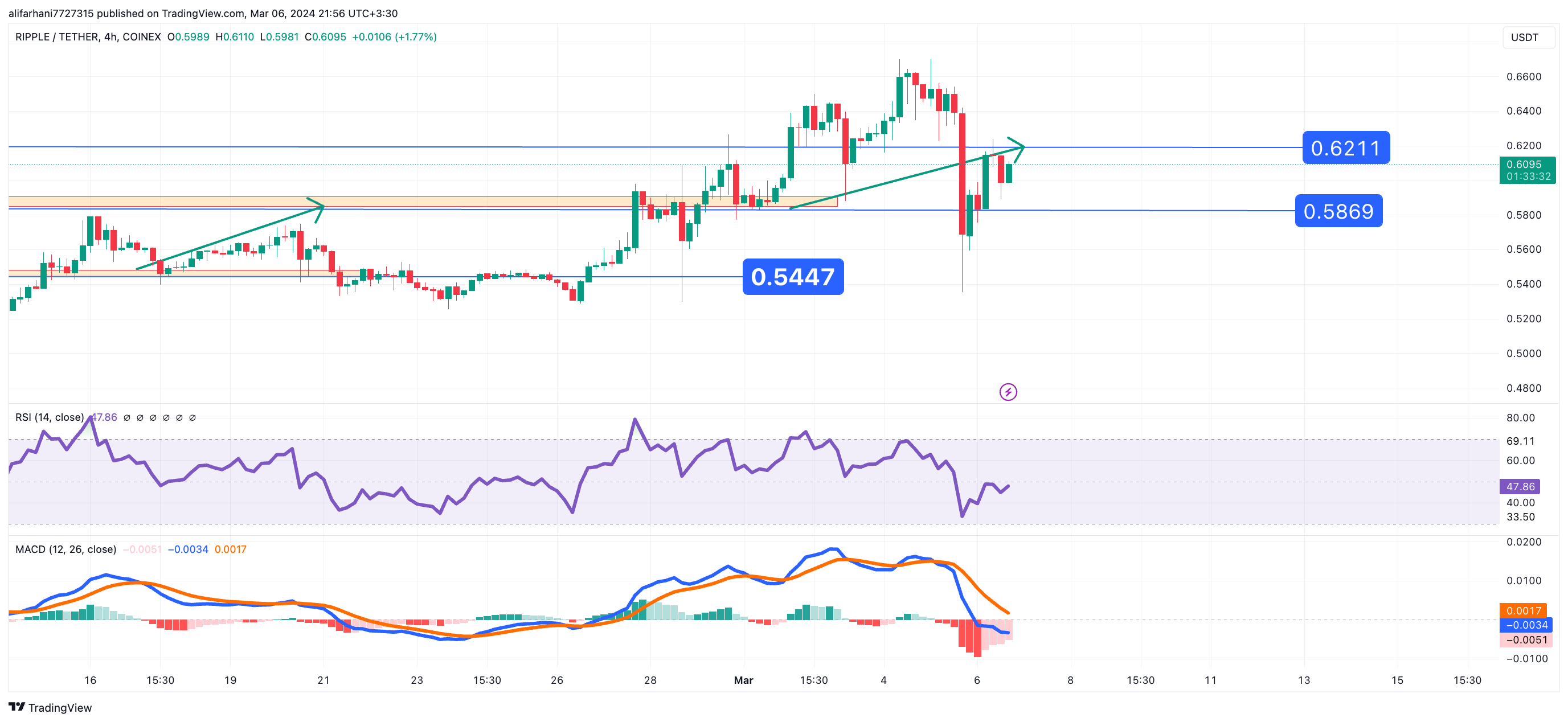 تحلیل تکنیکال ریپل (XRP) ۱۴۰۲/۱۲/۱۶، ادامه فاز صعودی صعودی