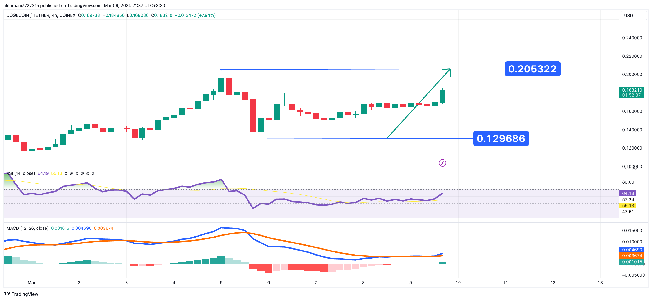 تحلیل تکنیکال دوج کوین ۱۴۰۲/۱۲/۱۹، ادامه روند صعودی صعودی