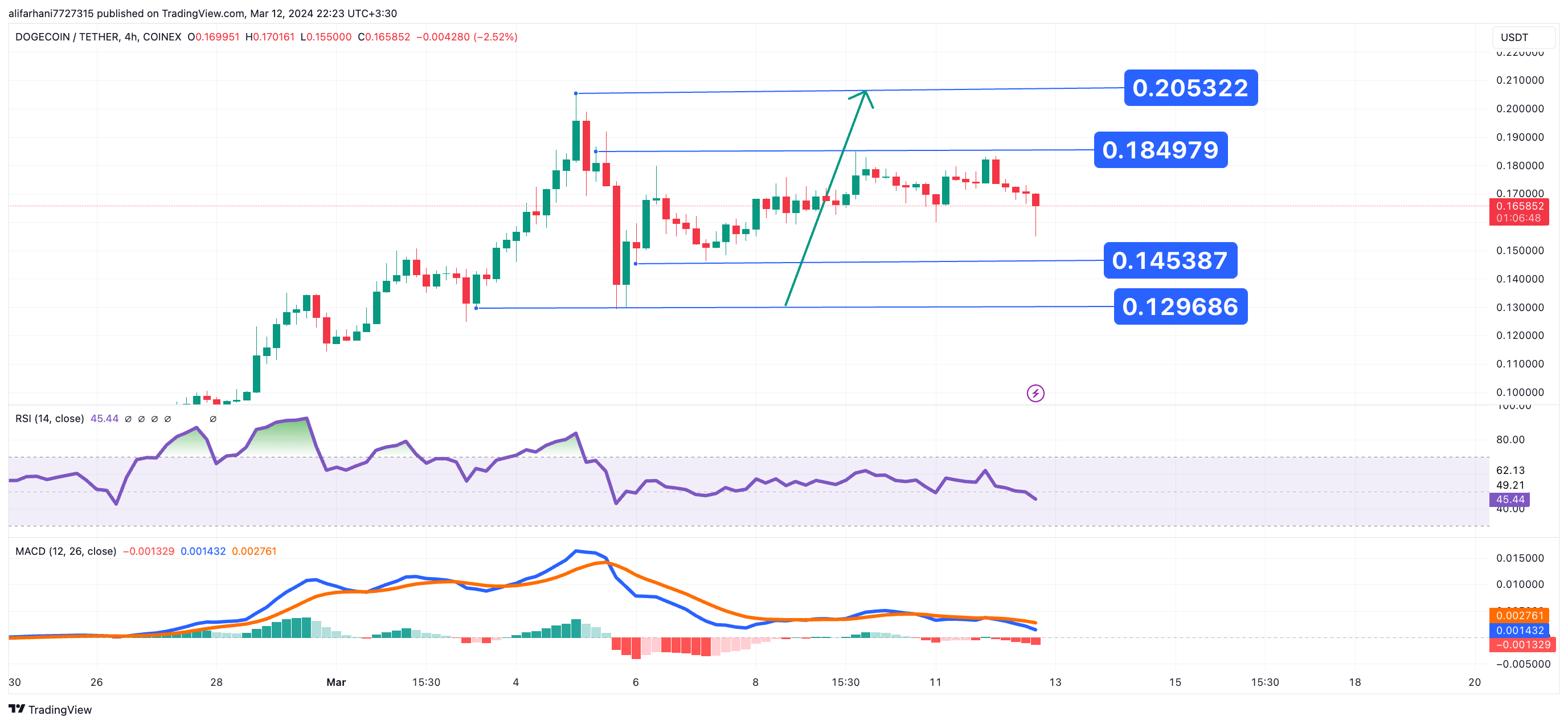 تحلیل تکنیکال دوج کوین ۱۴۰۲/۱۲/۲۲، ادامه روند صعودی صعودی